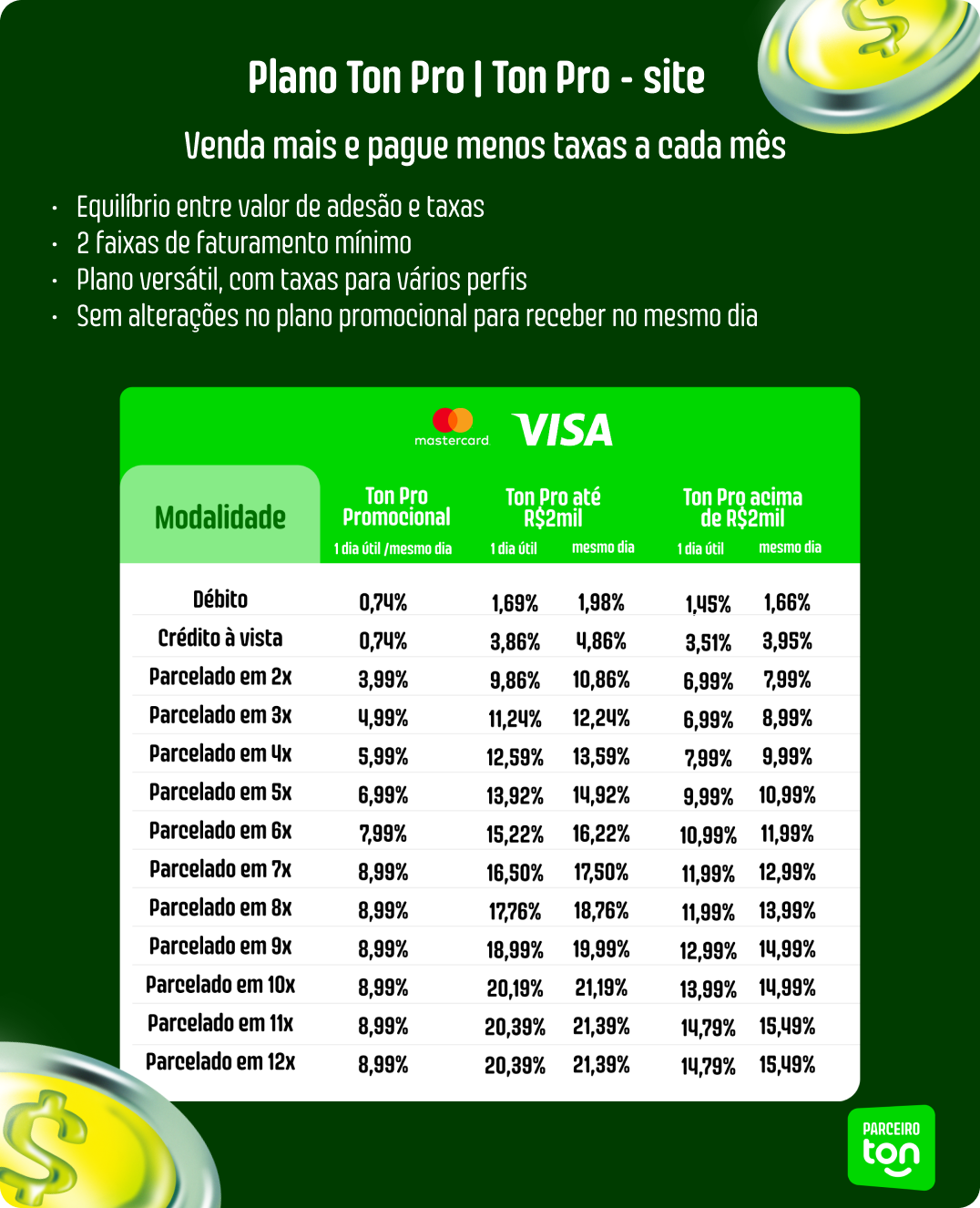 Taxas promocionais do Ton Pro são válidas apenas pra novos pedidos de máquina.